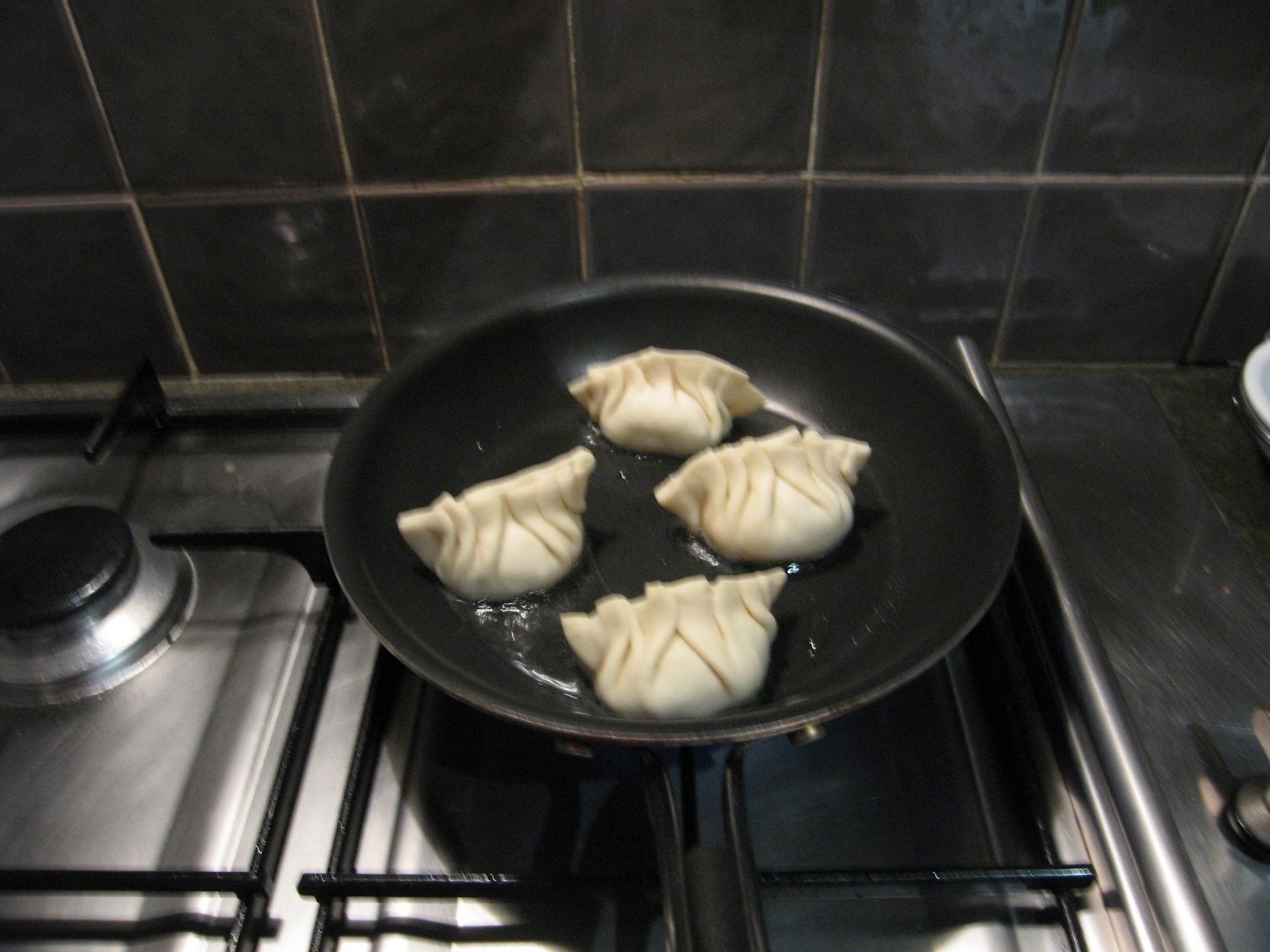 To pan fry (potstickers): Place dumplings in a frying pan with 2-3 tbsp of vegetable oil. Heat on high and fry for a few minutes until bottoms are golden. Add 1/2 cup water and cover. Cook until the water has boiled away and then uncover and reduce heat to medium or medium low. Let the dumplings cook for another 2 minutes then remove from heat and serve.