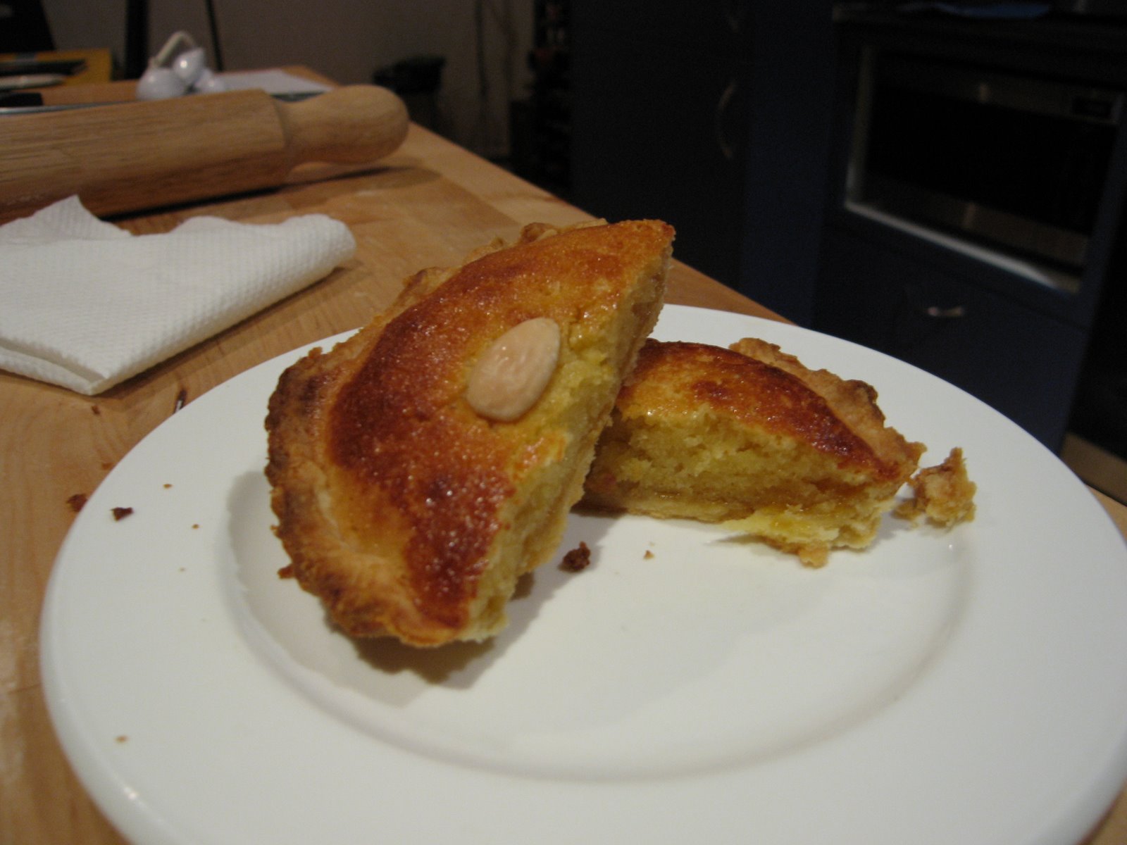The finished tart will have a golden crust and the frangipane will be tanned, poofy and a bit spongy-looking. Remove from the oven and cool on the counter. Serve warm, with crème fraîche, whipped cream or custard sauce if you wish. When you slice into the tart, the almond paste will be firm, but slightly squidgy and the crust should be crisp but not tough.