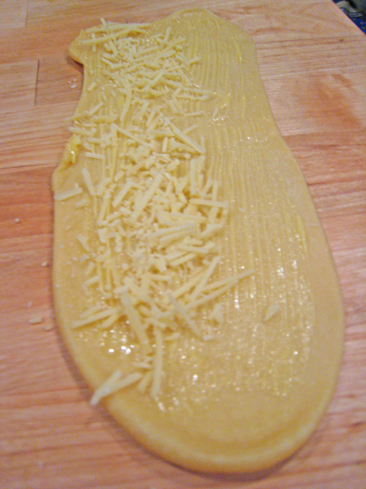 After baking, the baker topped the resulting roll with butter, sugar and even more cheese!
