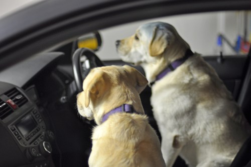 Bizou (dog on the passengers seat): “Hurry up, let’s make a get away while she’s not looking”